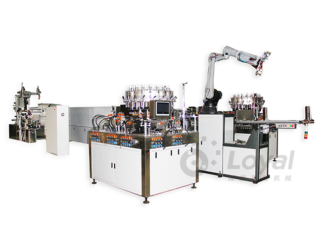西林瓶生產線包括:自動上管、自動成型、經機械手轉換至前端檢測線(也叫生產管控)、檢測線檢測的項目:1、瓶口內外徑 2、瓶身長短 3、瓶身外徑 4、瓶口邊厚 5、瓶底內凹尺寸檢測;經檢測后的合格品再用機械手夾盤轉換至退火爐網帶上,經高溫減除應力后再降溫,通過氣動吸盤將回火后的小瓶轉換至后端檢測線,后端檢測(也是重檢也叫終檢),經后端拍照檢測項目